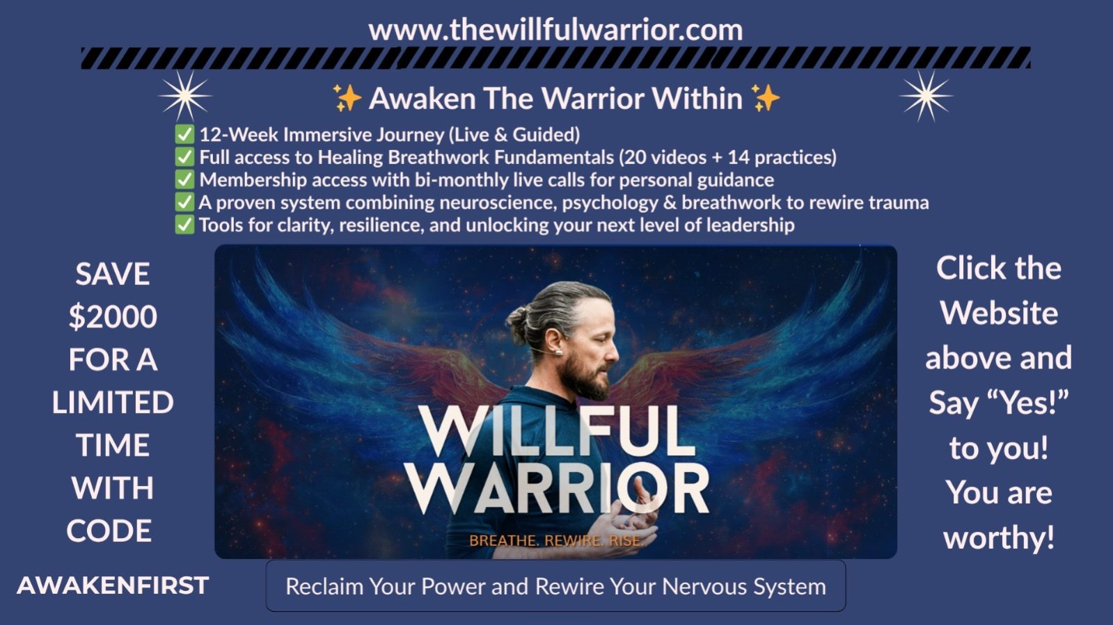 *Awaken the Warrior Within* This is my flagship 12-week program rooted in the Welcome Home Method, a system I’ve spent years refining through science, breathwork, and lived transformation. *RSVP HERE* 'https://staging.mindbodism.com/event/awaken-the-warrior-within/ *Here’s what participants receive:* 🧠 12 weeks of structured guidance to rewire the nervous system, release stored trauma, and activate clarity, energy, and emotional […]