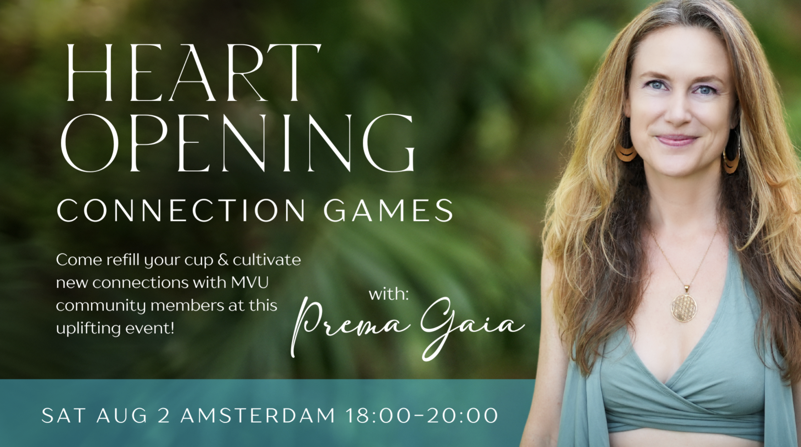 🔸Heart-Opening Connection Games🔸 Sat, Aug 2 | 6:00-8:00 PM 🔸Amsterdam🔸 About the event: 🔸Cultivate new connections with other MVU community members in this fun and nurturing environment. 🔸Learn practices that you can do with another person or in a group to create a somatic shift in your state: to feel deeper connection, calm and presence. […]